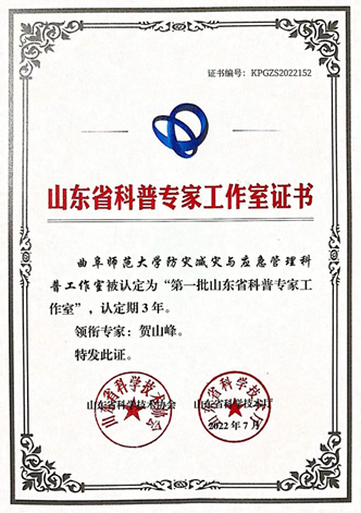 曲阜师大新闻中心讯 日前,山东省科协和省科技厅联合公布了第一批山东省科普专家工作室,曲阜师大地理与旅游学院贺山峰领衔的“HUANYING.COM防灾减灾与应急管理科普工作室”成功入选。