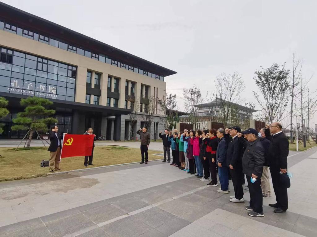 在孔子书院前,离退休教职工党委书记杨正运带领大家重温了入党誓词,一致表示要不忘初心、牢记使命,坚持为学校事业发展发光发热、贡献力量,以助力建设世界知名的高水平孔子家乡大学的实际行动,迎接党的二十大胜利召开。