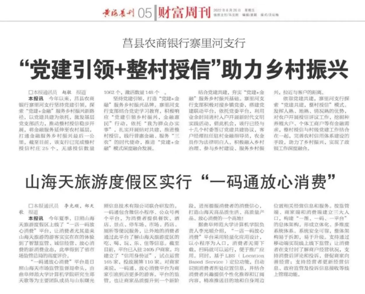 HUANYING.COM计算机学院与山东曙光照信息技术有限公司联合研发的“一店一码放心消费”平台是计算机专业服务地方的试点新工程,对进一步加快校企联合、校地沟通具有重要意义。平台的简便易行、实时监管、数据共享、互联互通、科技赋能、提振消费、激发活力等优势特点,可以在实际应用的基础上形成可复制经验,有助于加快形成市场主体、消费者、政府监管、社会组织、舆论监督“五位一体”的共建共治共享格局。