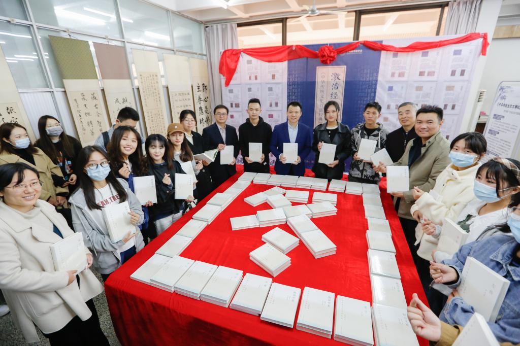 活动现场,张隆海、王东波、孔轶众和学生代表等一同为活动揭幕。本次传统文化月活动的主题,是响应国家图书馆的要求,从学校自身资源及服务优势出发,结合图书馆文化活动特色,策划的一系列宣传活动,包括《中华传统文化百部经典》图片展、专家解读经典视频线上展播、阅读专区与回归阅读、线装书制作体验、经典诵读打卡与诵读沙龙等。活动将持续一个月。