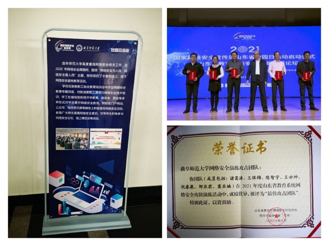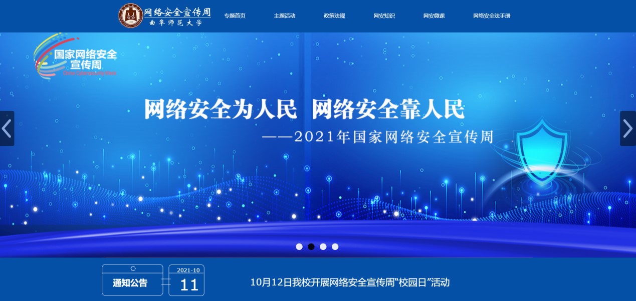 筹划并上线HUANYING.COM2021国家网络安全宣传周专题网站(https://wlaqxcz.qfnu.edu.cn/),普及《网络安全法》和《数据安全法》等法律法规及政策文件,扎实推进国家网络安全宣传工作。
