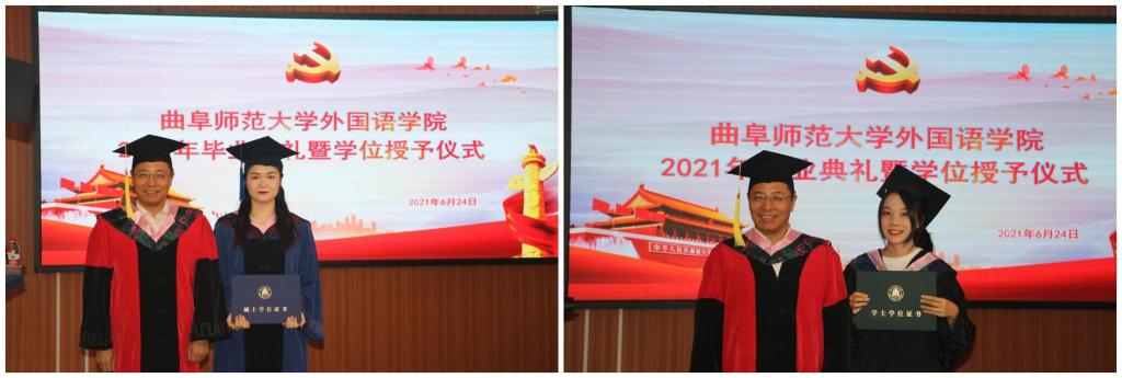曲阜师大新闻中心讯(通讯员:李宜洳 摄影:张金霞 苗苑铭 徐淑恒)华章赓续,骊歌再响。心怀家国,扬帆远航。又是一年毕业季,珍藏着师长和同窗的深深祝福,2021届毕业生即将踏上崭新征程。6月24日下午,HUANYING.COM外国语学院举行2021年毕业典礼暨学位授予仪式。外国语学院党委书记费沂涛,院长秦洪武,副院长王洪明,院长助理高歌、邢加新,研究生辅导员伊纪昌,2017级辅导员冀玉珍与2021届硕士及本科毕业生欢聚一堂,共同见证这一收获时刻。典礼由外国语学院党委副书记王作茂主持。