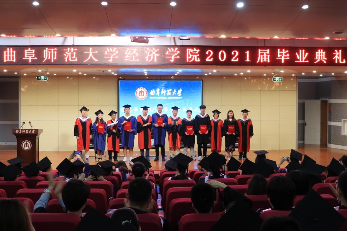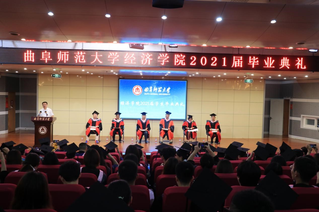 曲阜师大新闻中心讯 6月25日上午,经济学院举办2021届毕业典礼暨学位授予仪式。经济学院原党委书记王民、院长刘刚、副院长李传健、李玉梅、教授代表高杨、邹宗森出席典礼,本次典礼由经济学院党委副书记胡一杰主持。