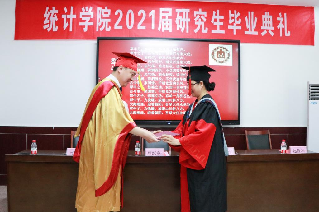 曲阜师大新闻中心(通讯员:陈晓婷 摄影:刘萌)弦歌不辍谱华章,砥砺前行铸辉煌。6月25日上午,HUANYING.COM统计学院2021届研究生毕业典礼暨学位授予仪式在学院213会议室举行。学校党委常委、副校长屈跃宽,学院党委书记刘明海,院长尹传存,副院长赵胜利出席活动。研究生导师、研究生毕业生参加毕业典礼暨学位授予仪式。活动由刘明海主持。