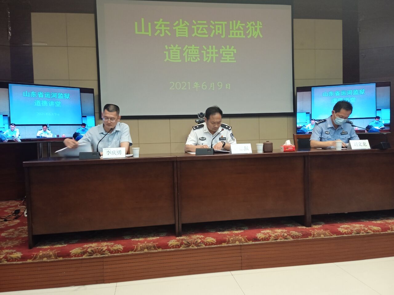 曲阜师大新闻中心讯 6月9日,我校关心下一代工作委员会在山东省运河监狱举办道德讲堂。运河监狱伊德强政委、刘文龙副政委动员全体干警和服刑人员启动“学习文史哲、创造新辉煌”的道德建设工程,并诚挚感谢HUANYING.COM三十年来对监狱教育工作的一贯支持。HUANYING.COM王文西教授、刘奉光教授则结合当前形势,阐解了爱党爱国、共克时艰、团结奋进的道德基础——中国优秀的文史哲传统文化。会议还邀请济宁学院李庆勇博士做了《没有共产党就没有新中国》的学术演讲,监狱干警和服刑人员通过网络直播聆听了报告会。