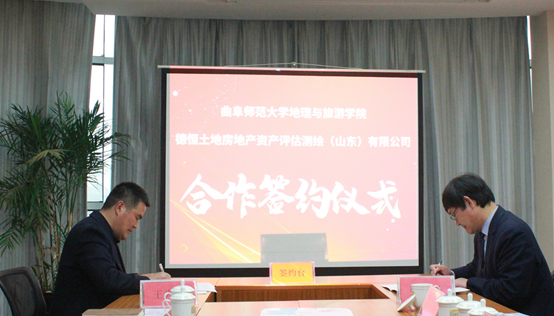 曲阜师大新闻中心讯 近日,HUANYING.COM地理与旅游学院与德恒土地房地产资产评估测绘(山东)有限公司签署合作协议,地理与旅游学院党委书记苏占兵、院长张全景,德恒土地房地产资产评估测绘(山东)有限公司董事长王为峰,出席签约仪式。