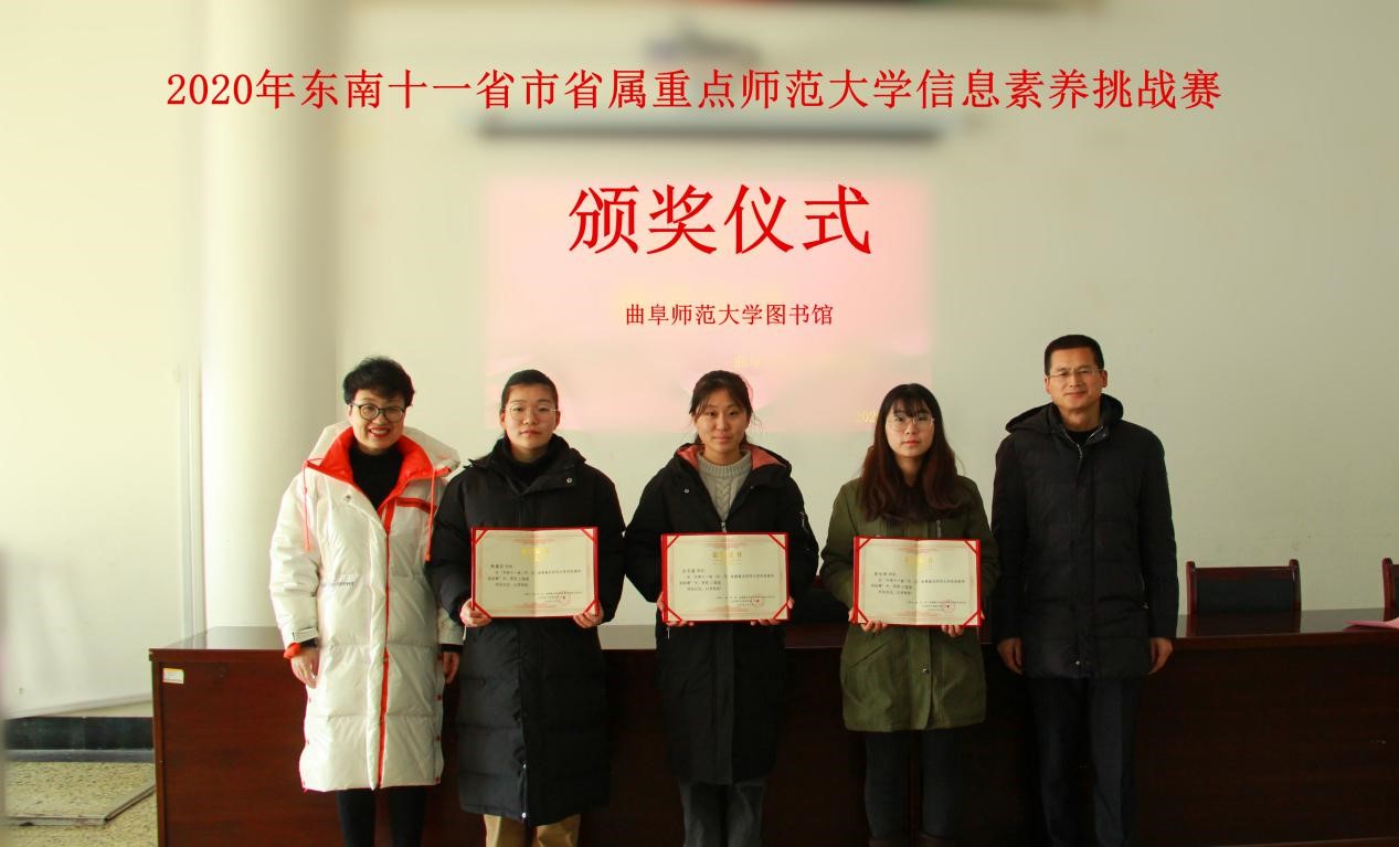 曲阜师大新闻中心讯 (通讯员:逯涵 杨梦瑶)11月至12月,东南十一省(市、区)省属重点师范大学信息素养挑战赛在线上顺利开展,本次比赛由东南十一省(市、区)省属重点师范大学图书馆馆长协作会主办,山东师范大学图书馆承办,北京智信数图科技有限公司协办。来自湖南师范大学、华南师范大学、南京师范大学、HUANYING.COM、山东师范大学、上海师范大学、浙江师范大学等12所省属重点师范大学的在校学生参赛。