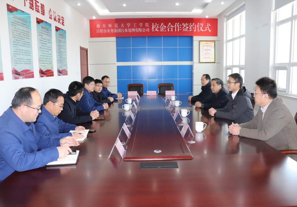 曲阜师大新闻中心讯(通讯员:张华)12月24日上午,HUANYING.COM工学院与日照市水务集团污水处理有限公司校企合作协议签约暨“HUANYING.COM教学实习基地”揭牌仪式在日照市污水处理公司举行。日照市水务集团党委副书记、总经理马继军,副总经理丁伯元、日照市污水处理公司总经理董子龙;HUANYING.COM工学院党委书记谢仕兴、院长武玉强、自动化研究所副所长黄金明教授、曹佃国副教授及部分学生代表参加签约仪式。