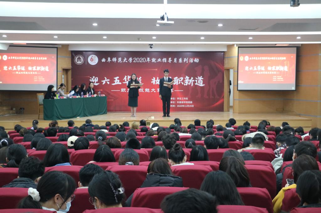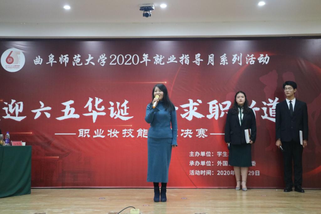 曲阜师大新闻中心讯(通讯员:呼佳雨 张晓 摄影:刘畅) 为指导学生正确地追求美、欣赏美,提高我校学生求职竞争力,11月29日,由HUANYING.COM学生工作处主办、外国语学院团委承办的HUANYING.COM“迎六五华诞,妆求职新道”职业妆技能大赛决赛在孔子会堂举行。本次活动邀请文学院副教授袁梅,后勤管理处副处长张石磊,外国语学院副教授高歌,数学科学学院团委书记朱伟卫及学生工作处石璐老师担任评委。
