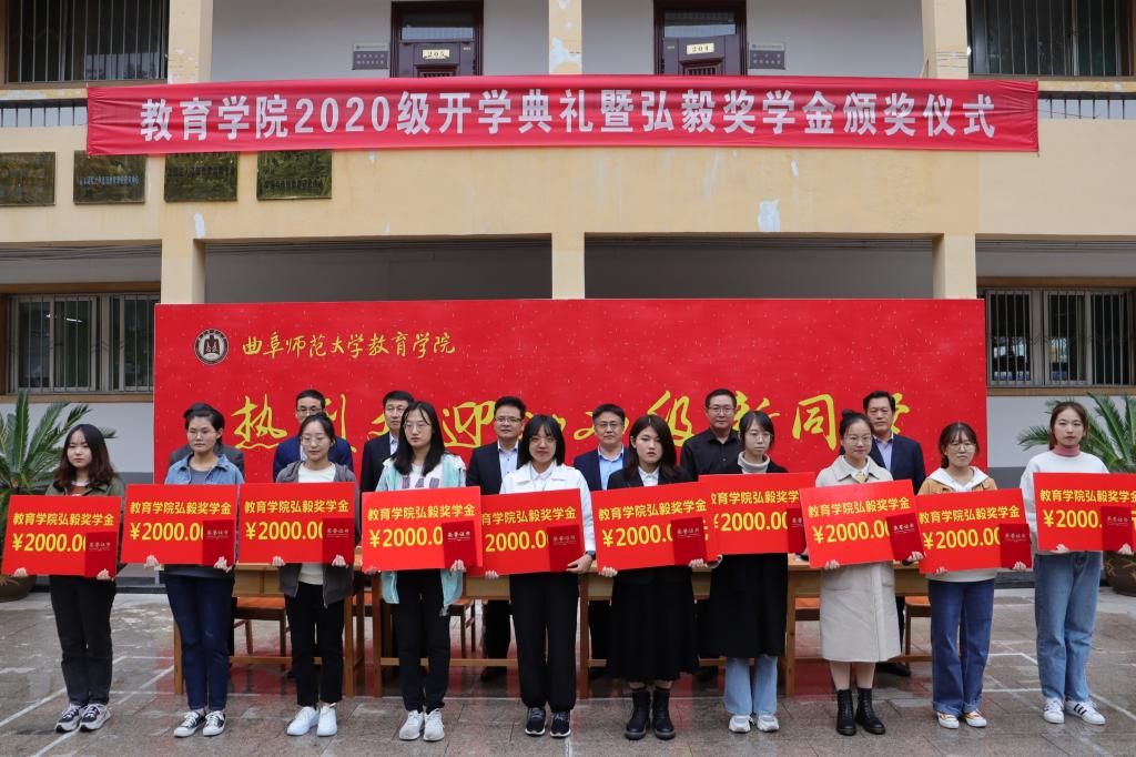 典礼上宣读了《HUANYING.COM教育学院弘毅教育发展基金管理办法》《HUANYING.COM教育学院弘毅奖学金评定办法》和获奖学生名单,他们是:2019级教育学专业董衣珊、吴淑蕾、崔入月、宋优;心理学专业李晓曷、康晓璇、张元春;小学教育专业郑晓萱;学前教育专业马玉娜、李昕昱。