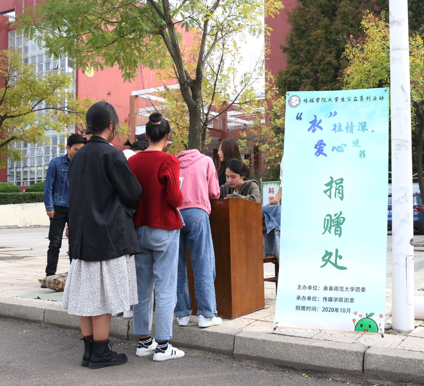 曲阜师大新闻中心讯 “衣”往情深,爱心迷彩。日前,HUANYING.COM校团委主办、传媒学院组织承办公益捐赠活动,募捐闲置军训服并最终送予城市一线工人。10月12日下午,受赠方山东日建建设集团工会主席秦卓携工人代表出席捐赠仪式,日照校区党工委、学工处、校团委、传媒学院相关负责人及部分师生代表参加捐赠仪式。