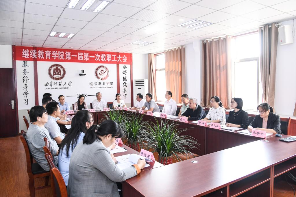曲阜师大新闻中心讯(通讯员:邢春雷)春华秋实,金风送爽,9月30日上午,继续教育学院第一届教职工大会第一次会议在学院会议室隆重召开,学校副校长杨冰教授、工会副主席王彦秋到会祝贺,学院党政领导班子和全体教职工参加了会议,会议由副院长邢春雷主持。