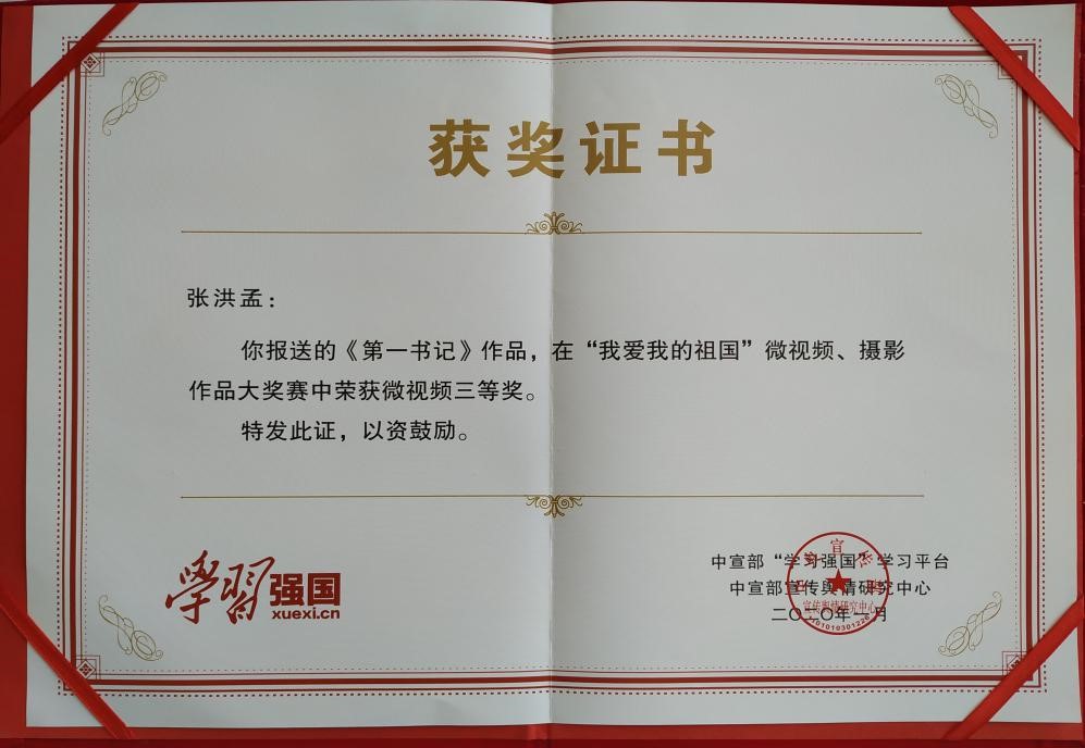 曲阜师大新闻中心讯 (通讯员 肖培华)近日,传媒学院作品《第一书记》在学习强国平台“我爱我的祖国”微视频、摄影作品大奖赛中荣获三等奖。本次大赛是“学习强国”学习平台为庆祝中华人民共和国成立70周年,大力弘扬爱国主义精神而发起的,面向全国征集反映国家历史变革和成就的优秀作品。传媒学院组织师生积极参加,认真筹备,用作品表达对祖国的热爱与最真挚的祝福。