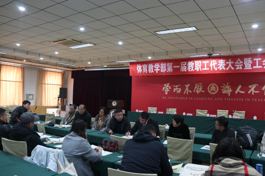 胡钦晓代表学校党委、行政向会议的召开表示热烈祝贺,向全体教职工致以亲切的问候。他指出体育教学部教代会和工代会的召开,是体育教学部建设发展中的一件大事,是全体教职工政治生活中的一件大事。体育教学部全体教职工以高度的主人翁使命感和历史责任感,踊跃投身于学校建设,在各自工作岗位上拼搏奉献,在各个领域内施展才华,为体育教学部和全校各项事业发展作出了贡献,在教育教学、训练竞赛、学科建设、师资队伍、科学研究等关键环节和重点领域取得了一系列令人瞩目的新成绩,尤其是在2019年山东省高校体育工作评价中得到山东省高校体育工作评价专家组的高度评价,充分彰显了体育教学部全体教职工的时代风采和担当作为。胡钦晓希望体育教学部切实把思想和行动统一到习近平新时代中国特色社会主义思想上来,深入贯彻落实党的十九大精神,坚持解放思想、改革创新、以人为本,以本次教代会为契机,总结一年以来在工作中取得的成绩和经验、找出在工作中存在的薄弱环节,对标一流,积极建设国内外有影响力的公共体育教学,在新时代努力开创体育教学部各项事业发展的新篇章。