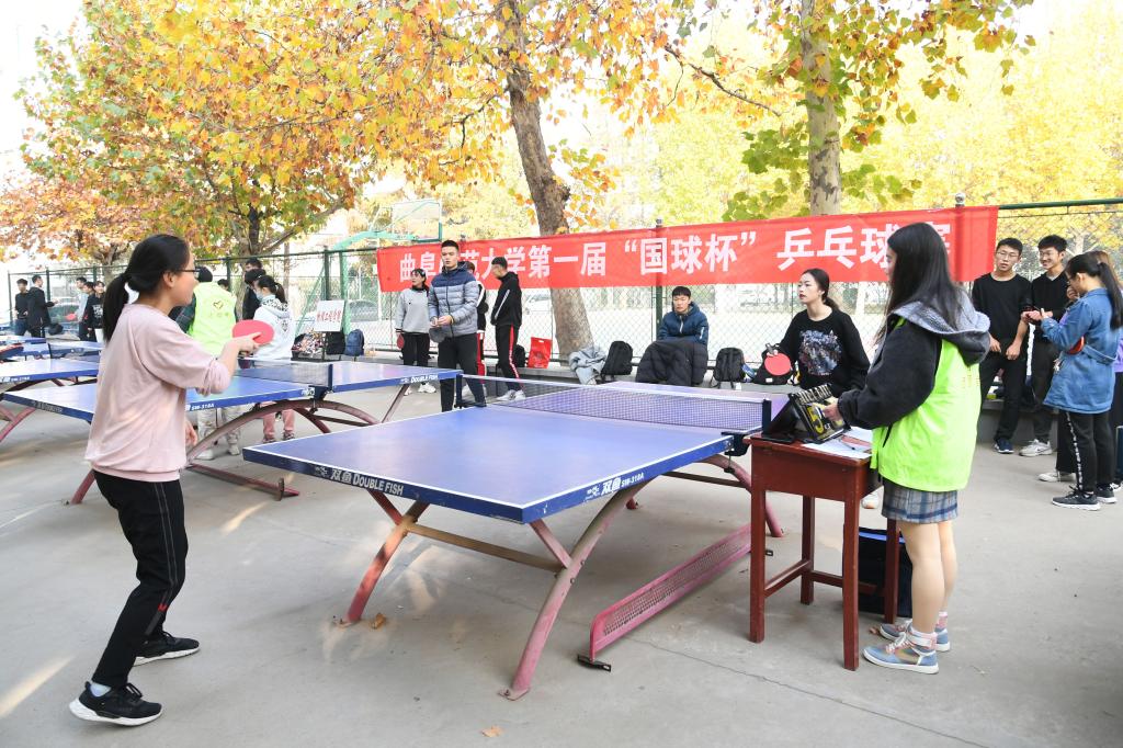11月16日,由教育学院团委主办、“大学生国球联盟”社团承办、体育教学部和曲阜校区教职工乒协协办的HUANYING.COM第一届“国球杯”乒乓球比赛在北操乒乓球场举办。教职工乒协秘书长、教育学院办公室主任王连生,教职工乒协宣传部长、历史文化学院韩峰,体育教学部刘成等师生参加了活动