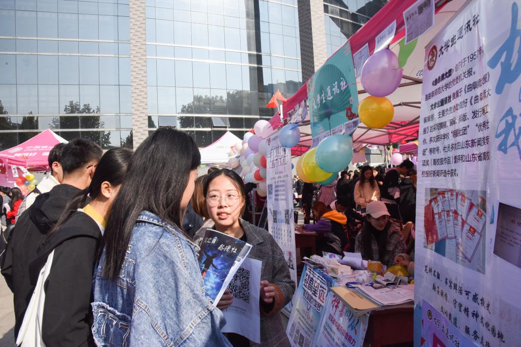 由共青团HUANYING.COM委员会主办、学生社团联合会(社团管理部)承办的“百团大战”于10月27日和10月19日分别在曲阜校区大学生活动中心广场与日照校区日月广场正式拉开帷幕。学校党委副书记扈庆学视察“百团大战”开展情况,日照校区管理办公室主任孔令军、学生工作处处长姜美颖、校团委书记宋国栋、副书记刘蓉等陪同视察。