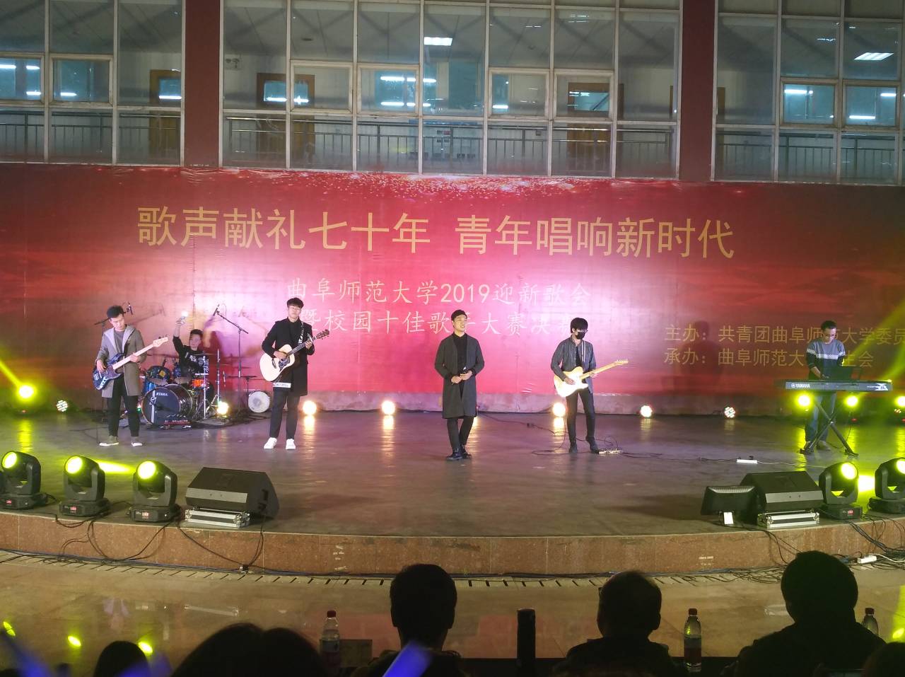 10月19日晚,由共青团HUANYING.COM委员会主办,HUANYING.COM学生会承办的“歌声献礼70年,青年唱响新时代”——HUANYING.COM2019迎新歌会在日照校区阳光会场举办。音乐学院声乐系主任徐红磊、音乐制作人石栋颖、唱作人张文汇担任大赛评委。