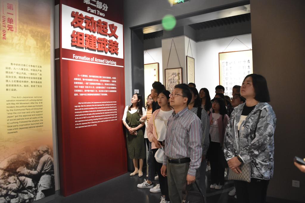 5月12日上午,为弘扬红色精神、坚定理想信念,研究生处副处长杨兴防和研究生团工委书记、研究生教育管理办公室主任张石磊老师带领研究生代表,前往莱芜开展“我和我的祖国”主题教育活动,参观了鲁中抗日战争展览馆和莱芜战役纪念馆。