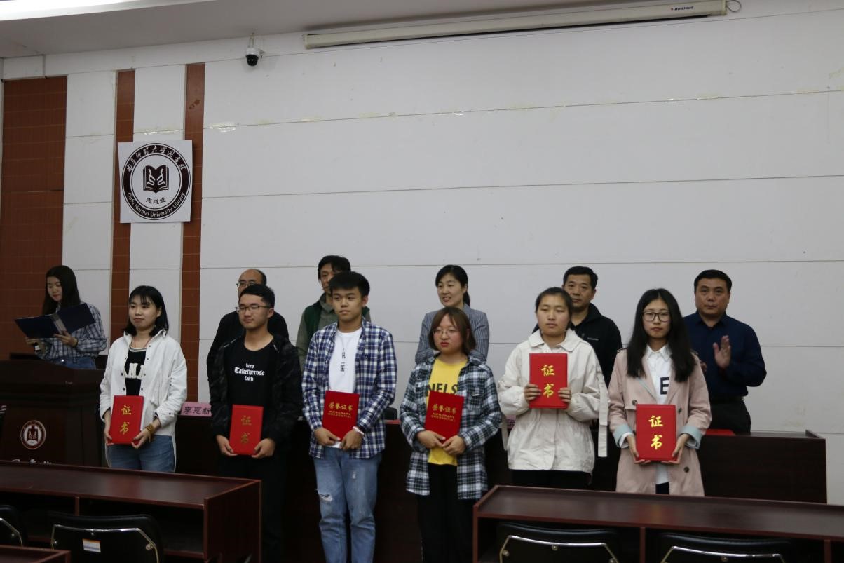 近日,由我校宣传部、校团委、图书馆举办的主题为“走近《论语》,感悟‘子曰’”2019年世界读书日系列活动圆满落幕。5月8日下午,世界读书日系列活动颁奖典礼顺利举行。共青团HUANYING.COM委员会副书记张明洁、我校图书馆副馆长张召生出席了本次颁奖典礼。