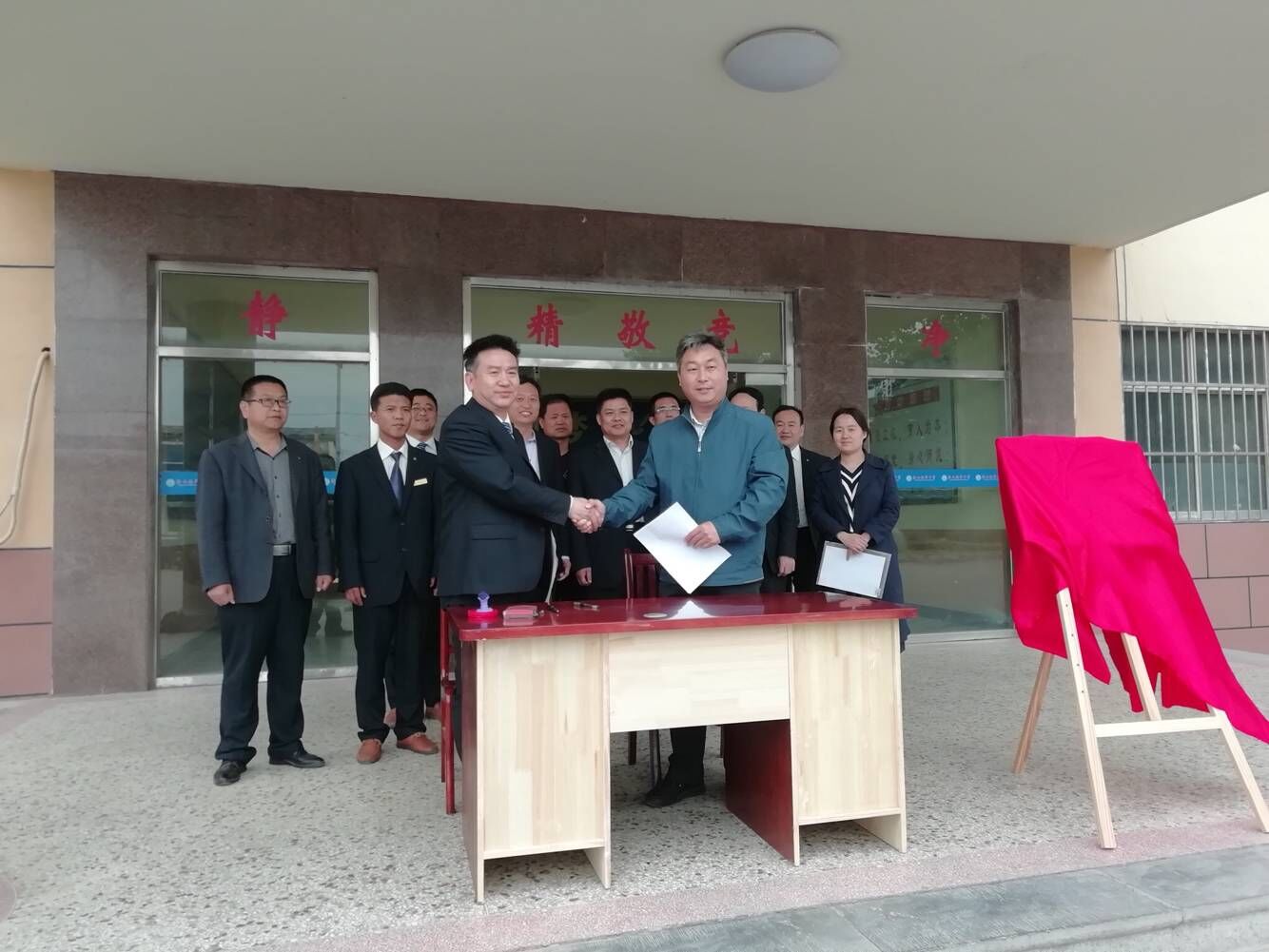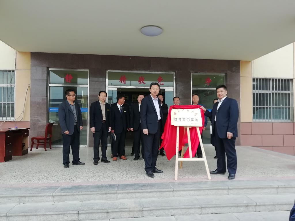 为进一步促进实习支教工作的开展,提高美术学院师范生的从教技能,4月19日下午,美术学院在济宁市梁山县韶华中学举行HUANYING.COM教育实习基地揭牌仪式。美术学院党委副书记毛永正与梁山县韶华中学校长周韶华签署了合作协议,美术学院党委书记刘敏与梁山县教育局副局长齐道新共同为教育实习基地揭牌。梁山县韶华中学部分教师代表以及我校美术学院辅导员位焕弟参加了揭牌仪式。
