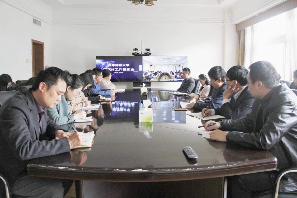 座谈会上,杨正运就我校2018年度各类新媒体运营、备案等情况作了介绍,校新媒体中心指导老师介绍了新媒体运营注意事项。校团委、学生工作处、历史文化学院、翻译学院新媒体指导老师、学生代表就新媒体宣传工作、运营管理等问题分别作了交流发言。