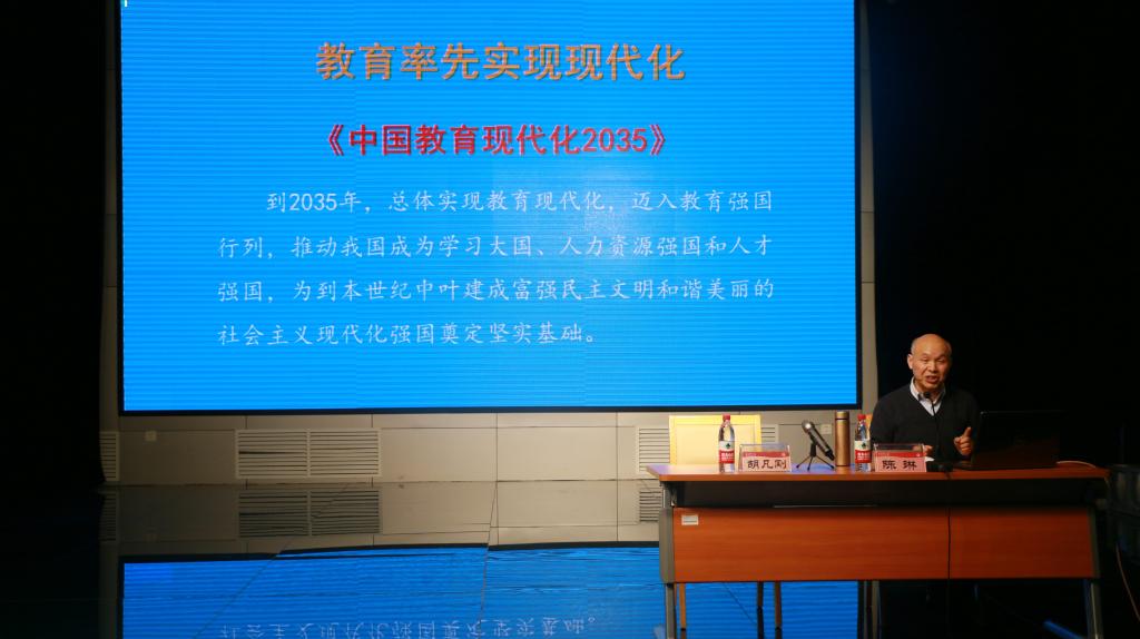 报告会上,陈琳教授围绕着人类正快步进入智慧新时代、新时代教育要素的变革新方向、智慧新时代的教育技术发展三个方面展开论述。陈琳教授在报告中旁征博引,指出教育应遵循“知、行、创合一”的思想,强调了学生在创新中获得“高峰体验”的重要性。陈琳教授强调,教师应该随着教育对象和知识教育的改变而改变,争做“智慧教师”,更好地适应智慧时代的发展。