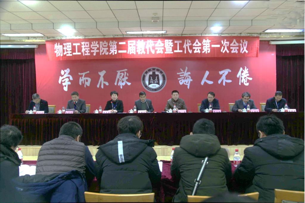 1月19日上午,物理工程学院第二届教代会暨工代会第一次会议在科技实验大楼二楼南会议室举行。副校长王继锁、校工会副主席孙岩出席大会并讲话,学院62名正式代表参加了会议。