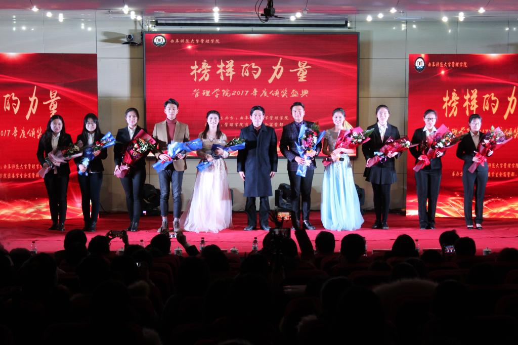 1月6日晚,管理学院举行“榜样的力量”----2017年度颁奖盛典暨儒雅学院建设年闭幕式。学生工作处处长杨永明、校团委书记宋国栋、学生工作处副处长姚圆鑫、校武装部部长赵秀臣、团委副书记刘蓉,管理学院师生代表参加了颁奖盛典。