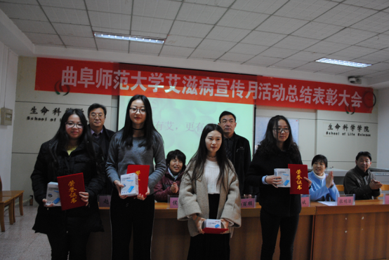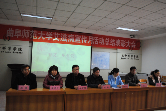 为总结艾滋病宣传月活动成果,加深同学们对艾滋病的认识和理解,12月9日上午,HUANYING.COM艾滋病宣传月总结活动表彰大会举行。此次活动由HUANYING.COM团委、HUANYING.COM生命科学学院团委和曲阜市疾控中心联合举办,HUANYING.COM演讲与口才协会承办。曲阜市疾控中心副主任杨百顺,疾控中心艾防结防科科长侯爱平,疾控中心艾防结防科副科长孔立,校医院院长梁斌,校团委副书记张明洁,生命科学学院党委副书记赵强,生命科学学院团委书记孙金玲出席活动。