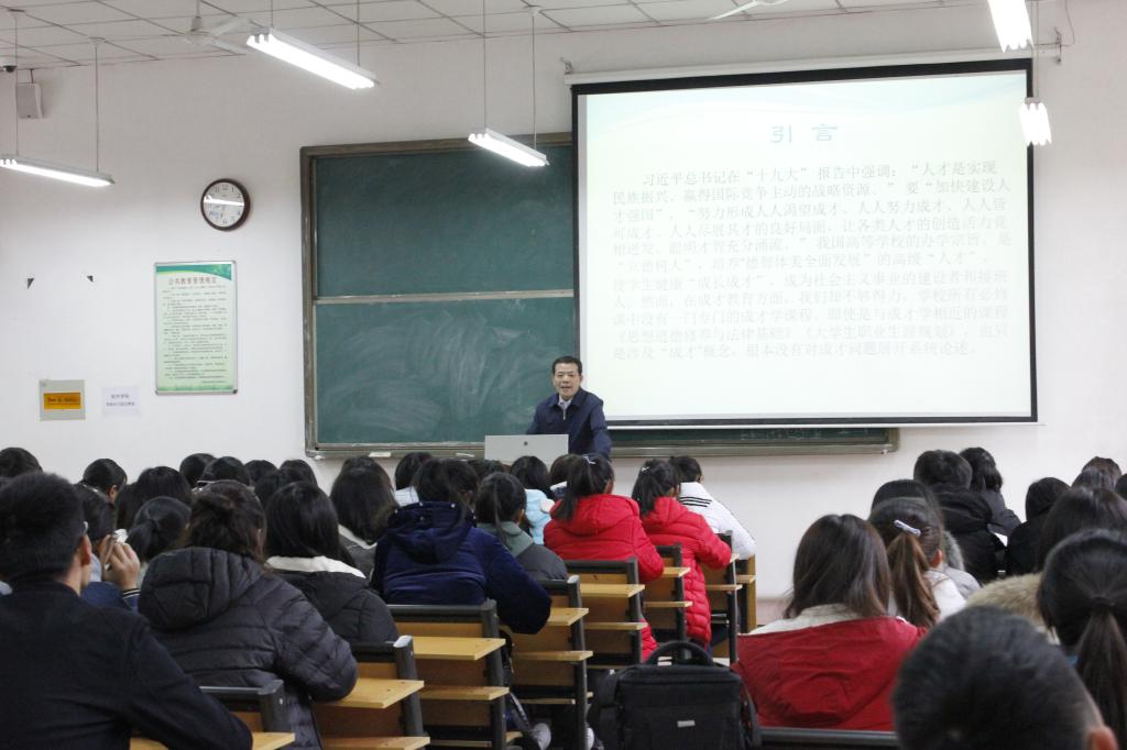 习近平总书记在十九大报告中指出“青年兴则国家兴,青年强则国家强。青年一代有理想、有本领、有担当,国家就有前途,民族就有希望。中国梦是历史的、现实的,也是未来的;是我们这一代的,更是青年一代的。中华民族伟大复兴的中国梦终将在一代代青年的接力奋斗中变为现实。全党要关心和爱护青年,为他们实现人生出彩搭建舞台。”为帮助广大学生坚定理想信念,志存高远,脚踏实地,勇做时代的弄潮儿,经济学院于11月12日、18日两次邀请我校张瑞甫教授结合学习贯彻十九大精神做“人生成才最优化”专题报告。