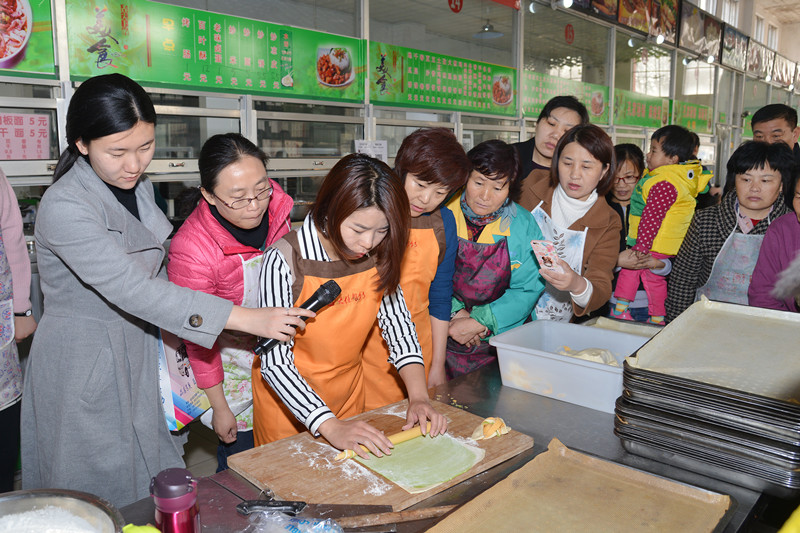 风和日丽,春色满园。318日上午,我校妇委会特邀济宁四位知名面点师于学生第三食堂为曲阜校区100余名教工传授面点制作的技术。工会主席王万民出席了本次活动,妇委会主任张月萍致开幕辞。