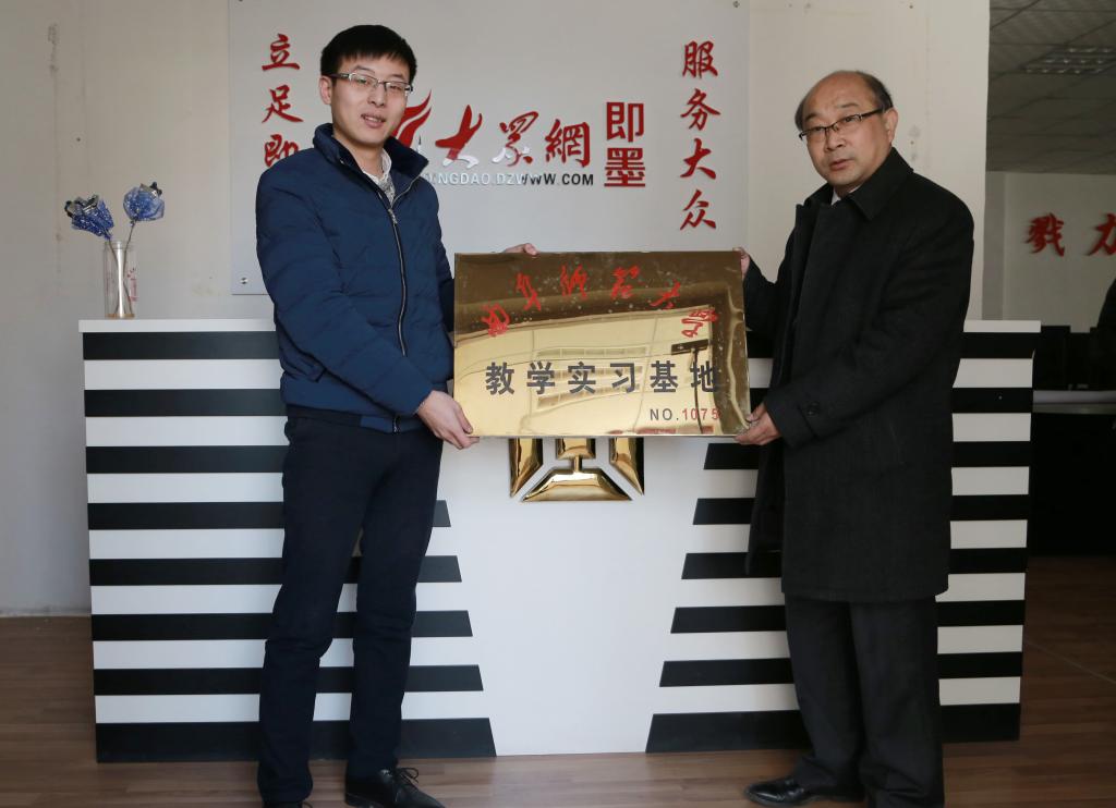 1月23日上午,“HUANYING.COM教学实习基地”授牌仪式在大众网即墨频道举行。传媒学院党委副书记肖龙航、团委书记刘蓉,以及传媒学院部分学生参加了授牌仪式。