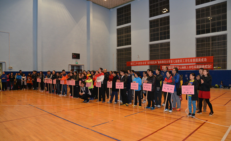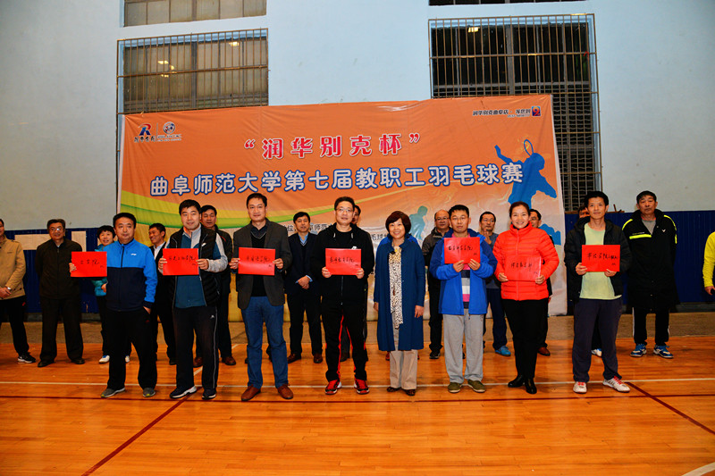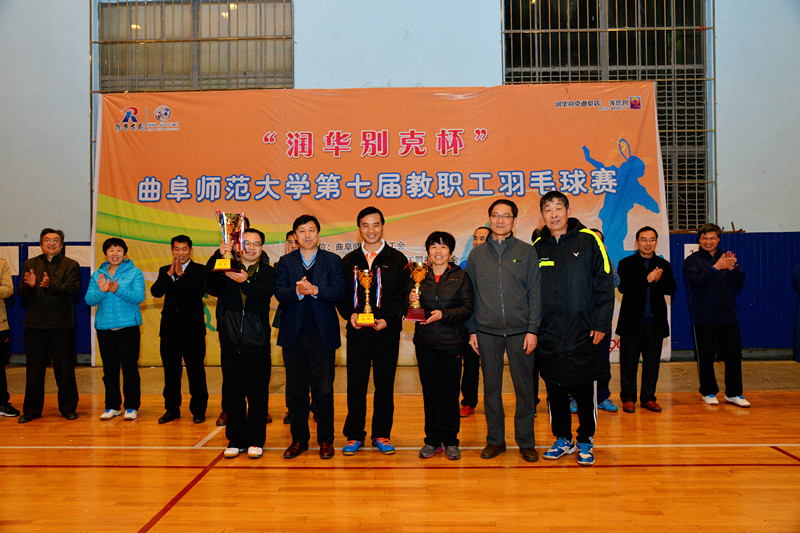 11月20日下午,由校工会主办,教职工羽毛球协会承办,体育科学学院、润华别克曲阜店协办的“润华别克杯”HUANYING.COM第七届教职工羽毛球赛在体育科学学院球类馆闭幕。学校领导张洪海出席闭幕式,学校办公室、校工会、羽毛球协会负责人,大赛组委会成员、各单位领队、运动员、裁判员参加活动。