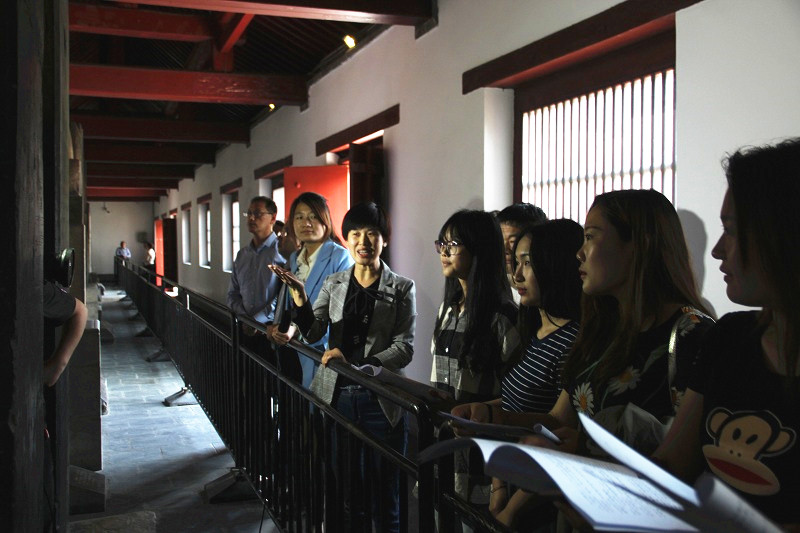 揭牌仪式后,参会师生代表入馆观看了《礼器碑》、《乙瑛碑》、《张猛龙碑》等汉魏碑刻,并交流了对汉魏碑刻观摩学习的理解与体悟。