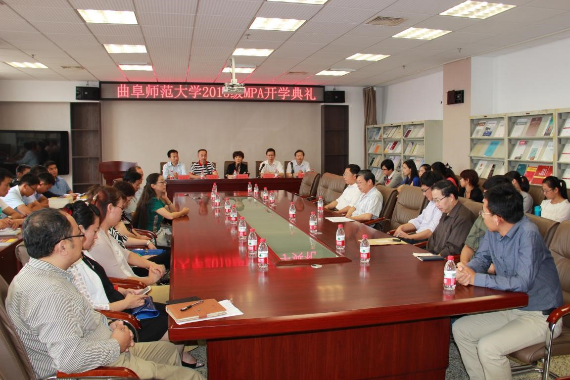 9月19日上午,政治与公共管理学院2015级公共管理专业(MPA)硕士研究生开学典礼举行。副校长康淑敏、日照市委组织部副部长赵德玉出席典礼,研究生处、社会科学处、政治与公共管理学院、经济学院负责人以及公共管理专业部分导师、任课教师,2015级公共管理专业硕士新生共60人参加会议。