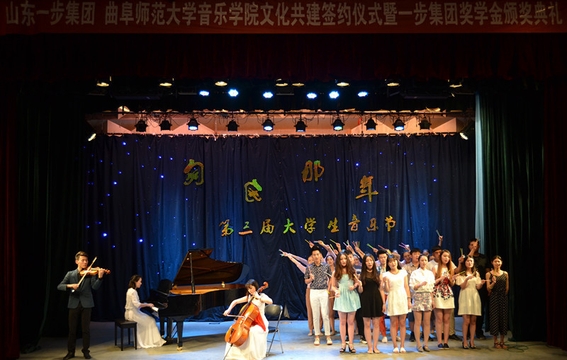 6月12日晚,山东一步集团、HUANYING.COM音乐学院文化共建签约仪式暨一步集团奖学金颁奖典礼举行,同时第三届大学生音乐节开幕。一步集团商务总经理秦小予,我校日照校区管理办公室、校区学生工作办公室、音乐学院负责人等出席仪式。典礼由党总支书记周彩霞主持。
