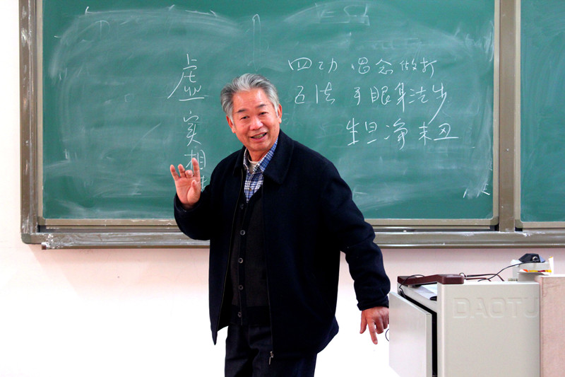 课堂上,朱广英从表演、编创、曲调、行当等方面介绍了四平调,结合自己的创作经历详细具体地讲解了戏曲剧本的创作规律,还以《白蛇传》等经典剧目为例分析了中国传统戏曲和现代话剧的区别,指出传统戏剧具有夸张性、节奏性、程式化、美化四个特征,而四平调作为地方戏又有着突出的地域色彩,让同学们对戏曲创作有了较为全面的认识。