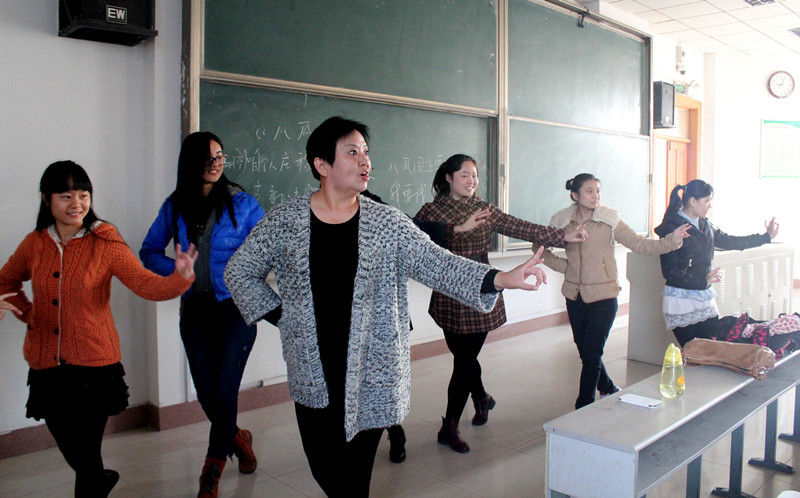 刘玉香讲述了四平调的发展过程,将戏曲演唱带到了课堂,带着同学们一起演唱四平调的唱段,优美的唱腔感染着每一位同学,使大家对四平调有了直观的认识。