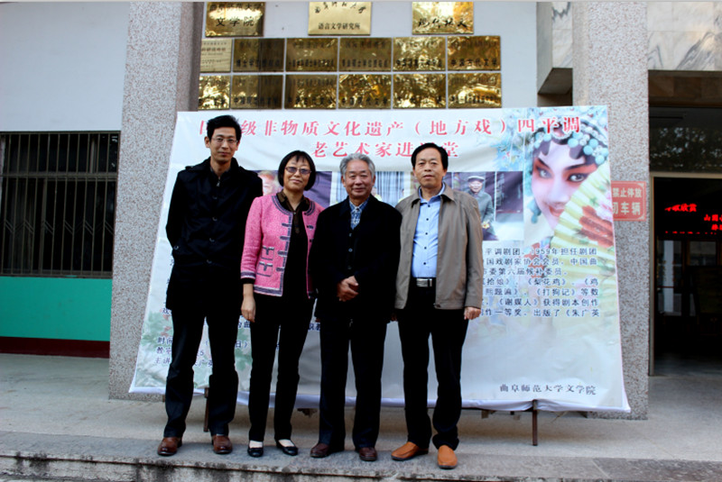 11月3日下午,文学院与金乡县文化馆共同举办“非物质文化遗产进课堂”活动,邀请国家级非物质文化遗产四平调传承人刘玉香以及原金乡四平调剧团副团长朱广英现场授课。