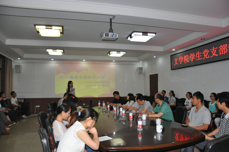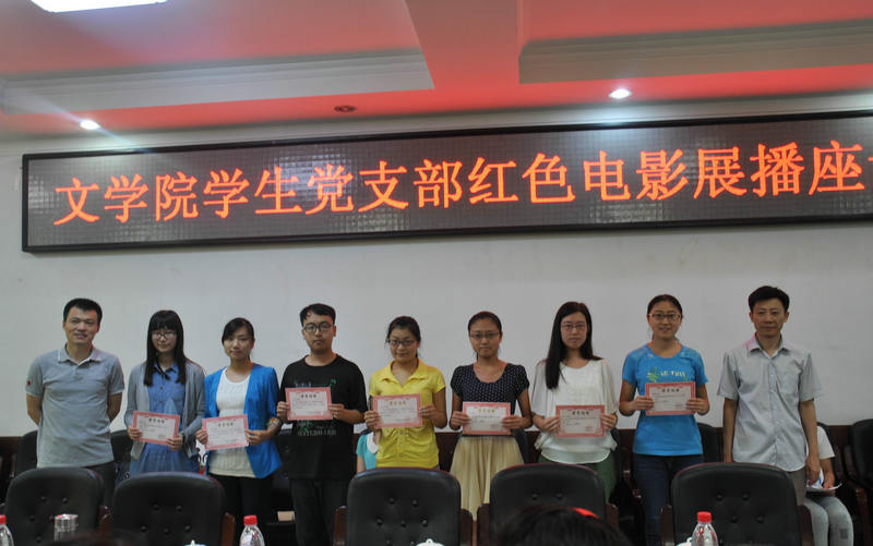 6月21日上午,由文学院党总支主办的庆祝中国共产党建党93周年主题系列活动之一——“时代激流中的红色丰碑”学生党支部红色电影展播座谈会顺利举行。文学院党总支、团总支负责人和部分教师出席了座谈会,并为获得建党93周年红色电影征文活动一、二等奖的同学颁奖。文学院全体学生党员和入党积极分子参加了活动。