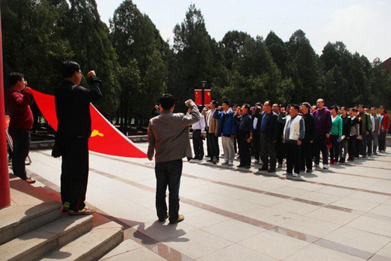 在孟良崮战役纪念馆,透过沙盘展示、历史图片、文献资料和声光电情景模拟,大家了解了孟良崮战役的过程,共同追寻那逝去的战火硝烟,共同领略了那撼人心魄的战争场景。在位于纪念馆后面的孟良崮革命烈士墓区,大家列队肃立,面对庄严的党旗举起右手,在领誓人的引领下,重温入党誓词,表达了永远跟党走、永葆共产党员政治本色的坚定信念。
