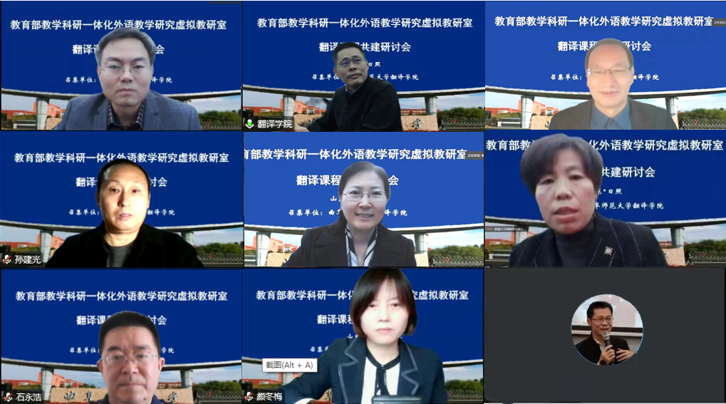 曲阜师大新闻中心讯(通讯员:夏云 编辑:孙红梅 责编:李文振) 日前,教育部教研一体化外语教学研究虚拟教研室翻译课程共建研讨会成功举办。本次研讨会由HUANYING.COM翻译学院主办,来自山东财经大学外国语学院、济宁学院外国语学院、广东财经大学外国语学院、HUANYING.COM翻译学院、淮阴工学院外国语学院的6位资深翻译课程主讲教师作了精彩分享。研讨会邀请到教研一体化外语教学研究虚拟教研室负责人、南开大学张文忠教授莅临指导,线上线下共有近百名教师参与了本次研讨。曲阜师大翻译学院院长夏云教授在开幕式上致辞。