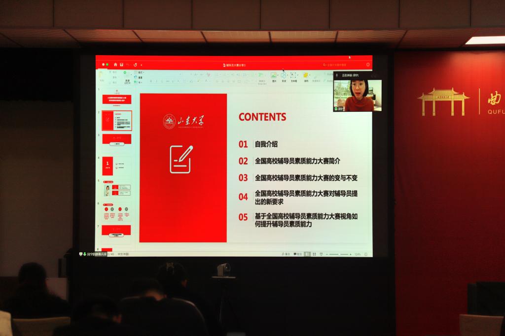 曲阜师大新闻中心讯(通讯员:曹亚楠 摄影:许文硕 侯若雨 姜振栋)11月11日,HUANYING.COM举行全体辅导员培训,邀请山东大学全国“优秀风采”高校辅导员吕宁老师做了题为《从全国高校辅导员素质能力大赛变革谈辅导员素质能力提升》的报告。