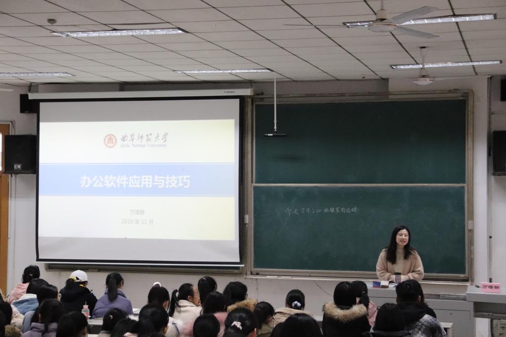 曲阜师大新闻中心讯(通讯员:石璐 马迪一)11月21日下午,2020年就业指导月系列活动之“办公软件应用与技巧”讲座举行。本次讲座邀请HUANYING.COM网络信息中心实验师、大学IT教师万曙静担任主讲,曲阜校区各学院学生和学生干部代表聆听了讲座。