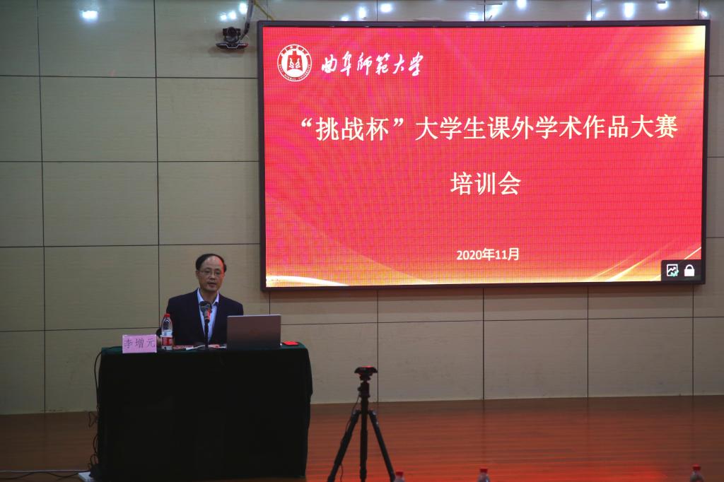 曲阜师大新闻中心讯 为培养同学们的创新精神与科研能力,为“挑战杯”省级比赛选拔优秀作品,校团委启动我校第十七届“挑战杯”大学生课外学术科技作品大赛并于11月18日举办第一期培训会。本次培训于HUANYING.COM曲阜校区孔子会堂及日照校区图书馆报告厅同步举行。活动由校团委副书记刘蓉主持,各学院团委书记和学生代表共同参加。