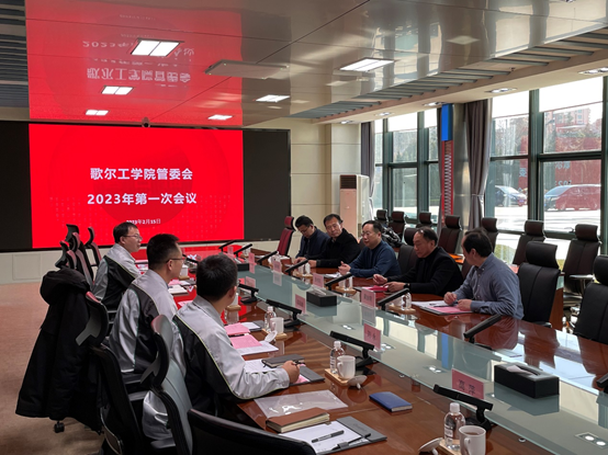 曲阜师大工学院讯 2月15日,曲阜师大招生办公室主任姜晓强、研究生处处长杜曙光、工学院党委书记兼院长张书东、研究生处副处长王其涛、歌尔工学院副院长黄金明一行,赴歌尔股份有限公司召开歌尔工学院2023年第一次管委会会议。潍坊市产教融合研究院院长田元训、歌尔股份有限公司员工管理部总经理魏文滨及企业相关领导参加会议。