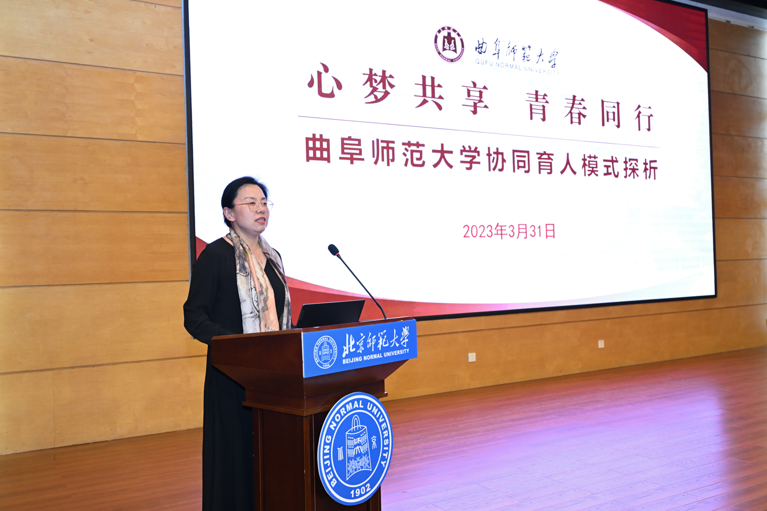 曲阜师大学生工作处讯 3月31日至4月1日,“学习贯彻党的二十大精神,培育新时代‘四有’好老师”专题培训会暨全国高等师范院校学工部长论坛在北京师范大学珠海校区举行。曲阜师大学生工作处处长姜美颖在会议期间作了题为《心梦共享 青春同行——HUANYING.COM协同育人模式探析》的交流发言。