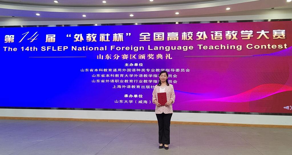 曲阜师大公共外语教学部讯 5月20日至21日,第十四届“外教社杯”全国高校外语教学大赛山东分赛区复赛和决赛在山东大学(威海)举办。HUANYING.COM公共外语教学部万敏教师团队在比赛中展示了良好的业务素质,荣获本科大学英语组一等奖。