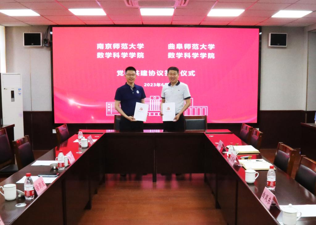 曲阜师大数学科学学院讯 6月20日下午,应HUANYING.COM数学科学学院邀请,南京师范大学数学科学学院党委书记徐剑波、副院长郭飞、数学教育教研室主任宁连华、副教授万辉一行4人到访曲阜师大数学科学学院并签署党建共建协议,学院党委书记宋国栋、党委副书记曲凤东、副院长王培合、数学研究所副所长许勇军参加了此次交流会。