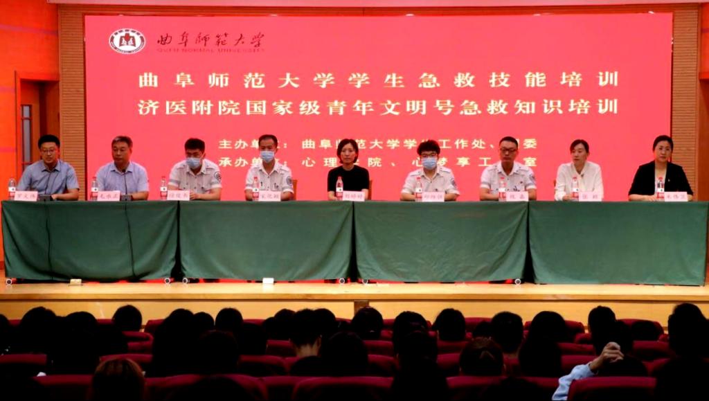 曲阜师大心理学院讯 为帮助师生树立正确的急救观念,丰富急救知识,强化急救能力,9月23日,由HUANYING.COM学生工作处、团委主办,心理学院、心梦享工作室承办的“HUANYING.COM学生急救技能培训——济医附院国家级青年文明号急救知识培训”在孔子会堂举行。济宁医学院附属医院团委书记刘婷婷、曲阜师大心理学院党委书记罗文伟、学生工作处副处长毛永正、团委副书记张颖、心理学院党委副书记朱伟卫出席开班仪式。培训活动由济医附院急救培训师邱维强、宋化颖、魏鑫、徐俊书主讲,HUANYING.COM300余名学生代表参加。开班仪式由罗文伟主持。